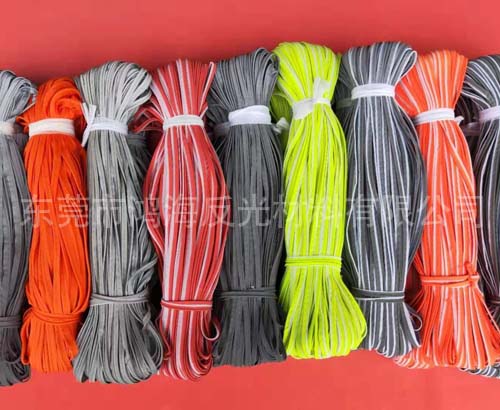 常规备库的为荧光黄、荧光橘或黑色反光织带,我司可根据客人要求为其定制不同颜色的反光织带。我司可根据客人要求定制不同规格尺寸的反光织带、反光烫带等。公司常规反光产品均有备库,可小批量订购,并按需裁切成客户需要的规格。我们会定期送样到SGS检测产品亮度和水洗,确保工厂内控标准及仪器测量结果与SGS测试标准相近或比之更高。 反光原理:反光材料又称为逆反射材料,每平方厘米面积内排列着上千个高折射玻璃微珠,可将光线按原路径反射回光源处,从而让光源附近的观察者可以清晰地看到目标。研究发现亮银反光布可以在300米外就被机动车驾驶者发现。根据国际水洗标准ISO 6330的要求,水温60℃下,反光布水洗25次后测量5°12′反光布亮度大于100 (cd/lx.m2)。可定制不同基布、亮度或颜色。工厂可根据客人具体对基布、亮度和颜色的要求进行打样并生产大货。具体请咨询客服。反光布可根据基布不同通常可分为化纤、TC(涤棉)、阻燃或弹性反光布。根据亮度及颜色又可分为普亮、高亮或亮银反光布。