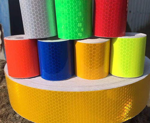 高强级反光膜也是带有背胶的材料,一般分为压敏型和热敏型两种。采用同类别的油墨使用丝网印刷技术可以制作各类图案。高强级反光膜一般是由透光性和耐候性能良好的树脂薄膜作为表层,第二层是真空层,第三层是嵌入式微小玻璃珠,第四层为金属反光镀层,第五层为树脂承载层,第六层是胶粘剂,第七层背纸保护层。